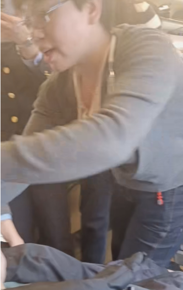 几乎在同一时刻,车厢内另外三四个素不相识的医护人员也闻讯赶到。周亚楠迅速俯下身子,一边检查一边清晰报出生命体征:“血压正常,心率稍快,呼吸平稳,脉氧正常,双侧瞳孔等大等圆,对光反射存在。”每一个数据,都像一颗定心丸。